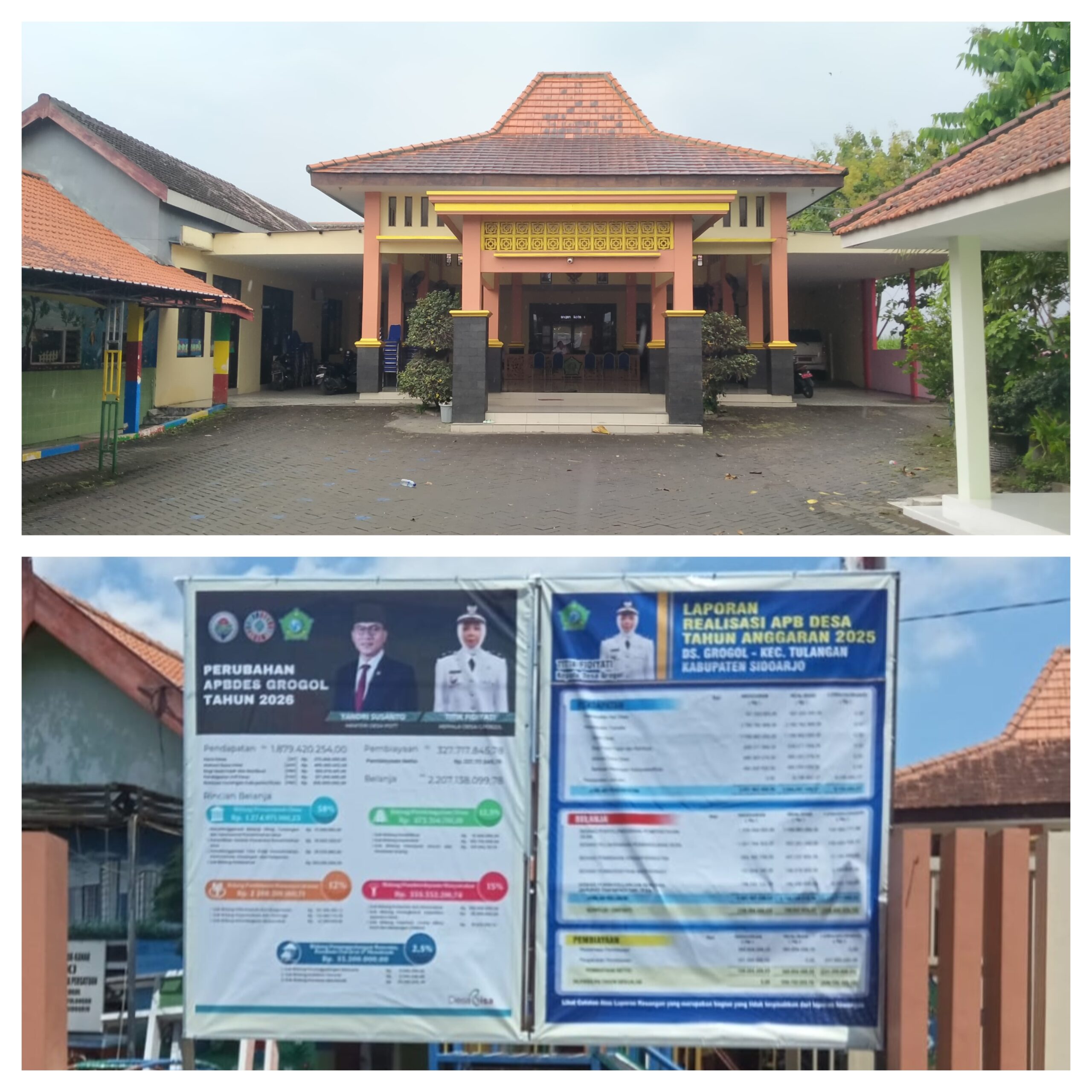 Sidoarjo | RNN – Desa Grogol, Kecamatan Tulangan, Kabupaten Sidoarjo resmi pasang Infografis Anggaran Pendapatan dan Belanja Desa Tahun Anggaran 2026 dan Realisasi APBDes Tahun Anggaran 2025 pada hari Senin (13/4/26), hal ini sebagai bentuk transparansi pengeloaan keuangan desa. Pemasangan Infografis APBDes bertujuan untuk menjamin transparansi dan akuntabilitas pengelolaan keuangan desa, mengajak partisipasi aktif masyarakat, serta memastikan penggunaan anggaran sesuai prioritas pembangunan desa untuk meningkatkan kesejahteraan warga, melalui penyampaian informasi yang jelas dan mudah dipahami.