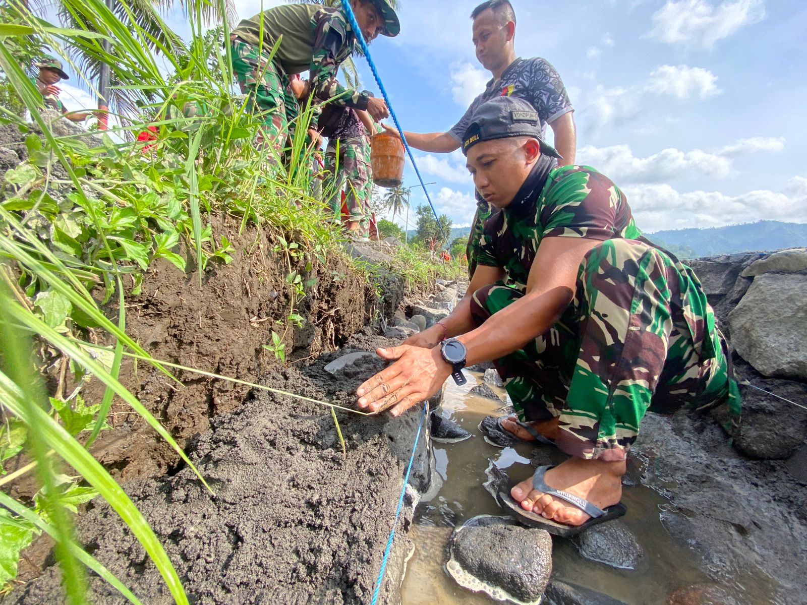 Dalam kegiatan tersebut, tampak anggota Satgas dari Yon Zipur 5 Sertu Agusti Margamarulan bersama masyarakat setempat bekerja bahu membahu membangun saluran air yang menjadi kebutuhan vital warga desa. Pekerjaan dilakukan secara gotong royong dengan penuh semangat meski di bawah terik matahari.