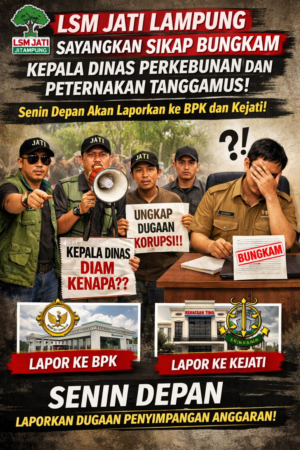LSM JATI berharap BPK dan Kejaksaan Tinggi Lampung segera menindaklanjuti laporan ini dengan melakukan audit investigatif dan penyelidikan. Sikap bungkam Kepala Dinas, menurut Kusmawan, justru semakin menguatkan dugaan bahwa ada sesuatu yang sengaja disembunyikan.