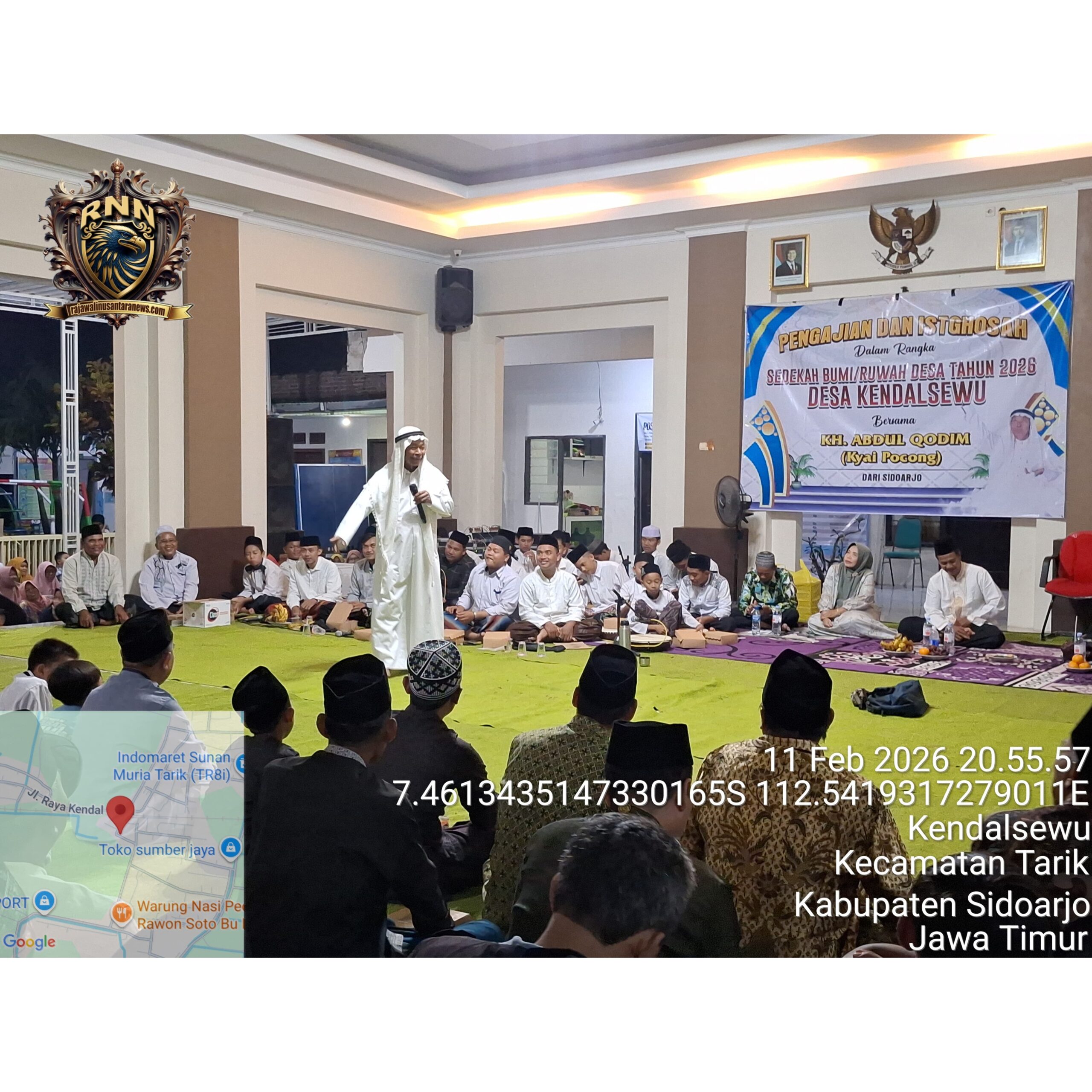 Sidoarjo | RMN – Ruwah Desa dengan kegiatan pengajian merupakan bentuk adaptasi tradisi Jawa ke dalam nilai-nilai Islami, di mana prosesi penyucian desa dilakukan melalui pendekatan spiritual agama. Seperti yang dilakukan Hj. Umi Hayati Kepala desa Kendal Sewu, dirinya mengajak warganya untuk memperingati Ruwah desa Dengan pengajian doa bersama dengan menghadirkan KH. Abdul Qodim yang akrab dengan panggilan “Kyai Pocong”, di balai desa Kendal Sewu Rabu,11/2/2026 Malam hari.