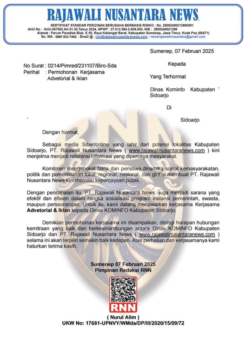 Permohonan Kerjasama Advetorial & Iklan Dinas Kominfo Kabupaten Sidoarjo, 07/02/2025