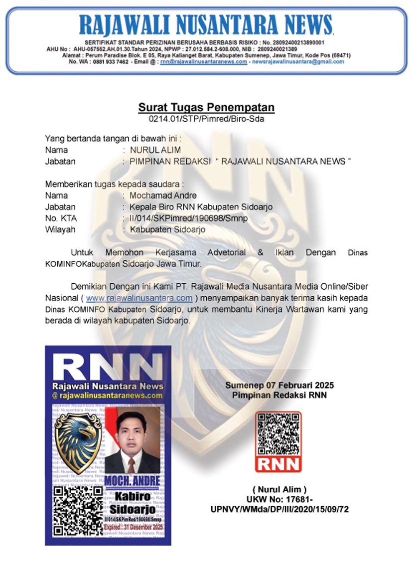 Tanda Tangan, Stempel dan Surat digital dikeluarkan Resmi dan dianggap Sah oleh Pimpinan Redaksi PT. Rajawali Nusantara News ( RNN )