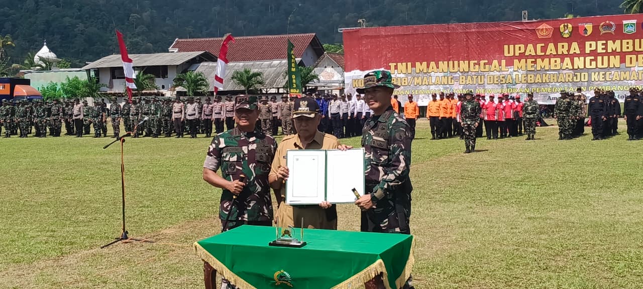 Malang, RNN — Bupati Malang Drs. H.M. Sanusi, bersama Forkopimda menghadiri Pembukaan TMMD Ke-126 TA. 2025 di wilayah Kodim 0818 Malang-Batu bertempat dilapangan sepakbola Desa Lebakharjo Jl. Penggalang No. 193 Kecamatan Ampelgading Kab. Malang.