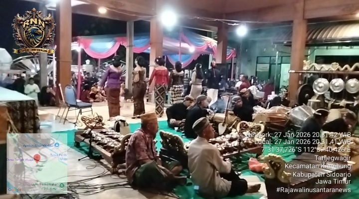 Sidoarjo | RNN – Ruwat desa adalah tradisi adat Jawa untuk memohon keselamatan, kesejahteraan, dan kesuburan desa dengan “membersihkan” atau membebaskan dari malapetaka melalui doa, sedekah bumi (tumpengan), dan ritual budaya seperti pagelaran wayang kulit, sebagai wujud syukur kepada Tuhan dan leluhur, memantapkan kerukunan , gotong royong dan kekompakan warga, menjaga budaya dan kearifan lokal serta menjauhkan dusun dari marabahaya, serta mengenang sejarah desa.