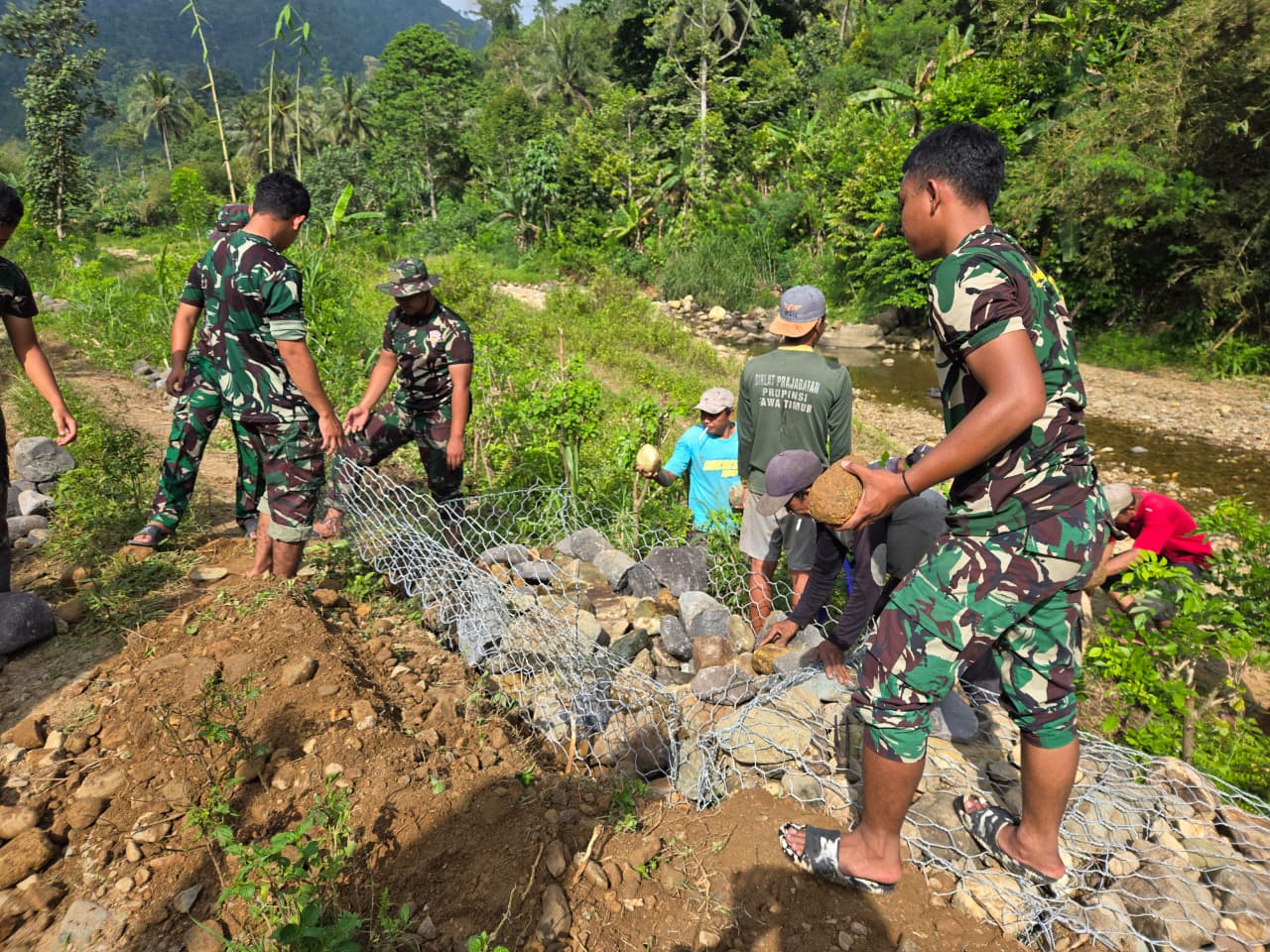 “Kawat bronjong ini berfungsi menahan erosi tebing sungai. Dengan semangat gotong royong TNI dan masyarakat, kita harapkan hasilnya bisa bermanfaat jangka panjang bagi warga Lebakharjo,” ujarnya.